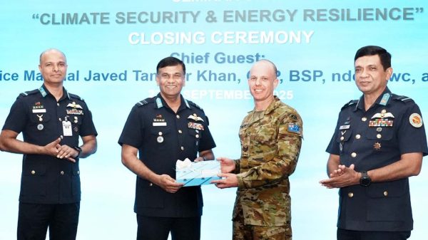 অস্ট্রেলিয়ান ডিফেন্স ফোর্স এবং বাংলাদেশ সশস্ত্র বাহিনীর মধ্যে ইন্দো-প্যাসিফিক এন্ডেভার (IPE)-২০২৫ প্রথম পর্যায়ের যৌথ কার্যক্রমের অংশ হিসেবে বাংলাদেশ বিমান বাহিনীর তত্ত্বাবধানে জলবায়ু নিরাপত্তা ও জ্বালানি স্থিতিস্থাপকতা বিষয়ক সেমিনার ঢাকা কুর্মিটোলাস্থ