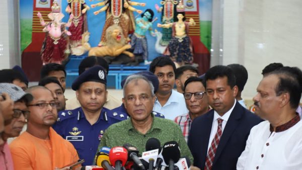 স্বরাষ্ট্র উপদেষ্টা লেফটেন্যান্ট জেনারেল (অব.) মো. জাহাঙ্গীর আলম চৌধুরী বলেছেন, আসন্ন দুর্গাপূজা উৎসবমুখর ও শান্তিপূর্ণভাবে আয়োজনের জন্য সার্বিক ব্যবস্থা নেয়া হয়েছে।তিনি আজ নারায়ণগঞ্জে রামকৃষ্ণ মিশন পূজামণ্ডপ পরিদর্শন শেষে ব্রিফিংয়ে এ