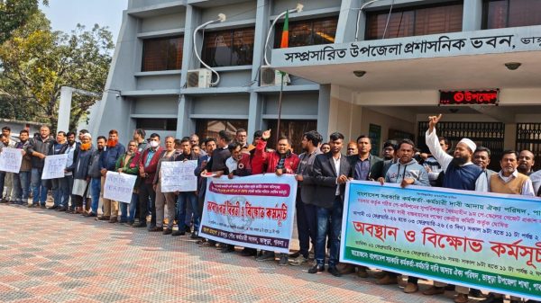 সরকার কর্তৃক গঠিত পে-কমিশনের সুপারিশকৃত ৯ম পে-স্কেলের গেজেট প্রকাশসহ ৭ দফা দাবি বাস্তবায়নের লক্ষ্যে পাবনার ভাঙ্গুড়ায় বিভিন্ন গ্রেডের সরকারি কর্মকর্তা-কর্মচারীরা অবস্থান ও বিক্ষোভ কর্মসূচি পালন করেছেন। আজ মঙ্গলবার সকালে বাংলাদেশ