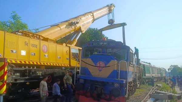 সাড়ে ৫ ঘণ্টা বন্ধ থাকার পর ঢাকার সঙ্গে উত্তরাঞ্চলের ট্রেন চলাচল পুনরায় শুরু হয়েছে। প্রায় দুই ঘণ্টা চেষ্টার পর রেললাইন থেকে লাইনচ্যুত বগিগুলো সরিয়ে নেয়ার পর এ পথে পুনরায় ট্রেন