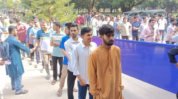 পাবনার ভাঙ্গুড়া উপজেলায় উৎসবমুখর পরিবেশে জেলা পরিষদের নির্বাচনে ভোট গ্রহন শুরু হয়েছে। সোমবার উপজেলা পরিষদে বীর মুক্তিযোদ্ধা এম.হোসেন আলী অডিটরিয়ামে সকাল থেকেই ভোটাররা ভোট দিতে আসেন। এই ভোট কেন্দ্রের অন্তত পাঁচশ ফুট দুরে প্রার্থীদের পক্ষে ক্যাম্প স্থাপন করা হয়েছে। রাস্তা ও ক্যাম্পগুলোর সামনে প্রার্থীদের ছবি ও প্রতীক সম্বলিত পোষ্টার ঝুলানো রহয়েছে। নির্বাচনের দারুণ একটা পরিবেশ লক্ষ্য করা যায়। এসব ক্যাম্প থেকে ভোটারগণ তাদের সিরিয়াল নম্বর সংগ্রহ করতে পারছেন। অতপর ভোটাররা নিরাপদে ভোট কেন্দ্রে চলে যাচ্ছেন। কেন্দ্রের আইন-শৃংখলা পরিস্থিতি সম্পূর্ণ নিয়ন্ত্রণে রয়েছে। প্রতিদ্বন্দী প্রার্থী ও সমর্থকরা রয়েছেন সহাবস্থানে।